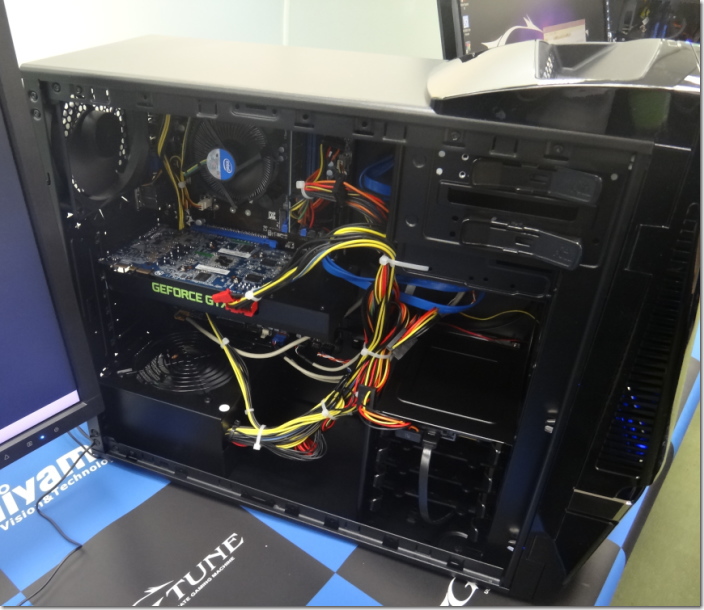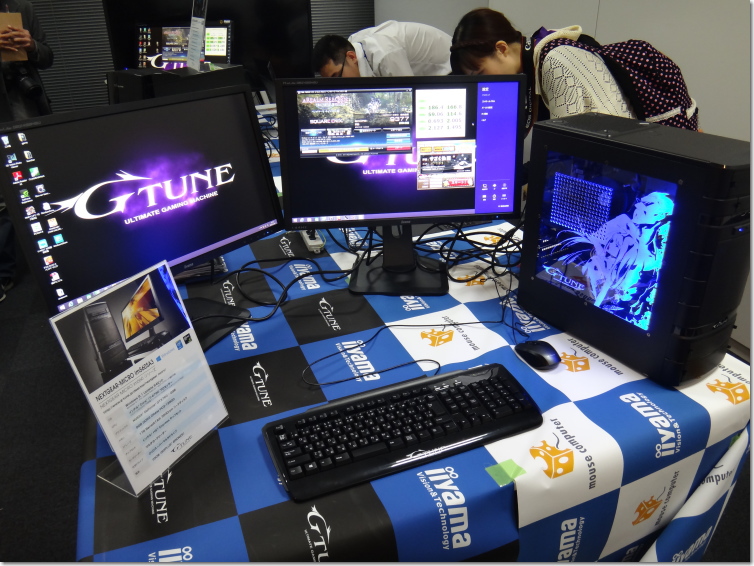 当社を御存じない方も多いと思われますが、当社はベンチャー企業として発足し10年以上 BTO パソコンを開発・販売しているメーカーです。 ゲーム専門パソコンのブランドである G-Tune などを立ち上げており、365 日の無料サポートなども行っております」 私:「今回の展示では ファイナルファンタジー14(FFXIV) のデモが走っていますが・・・ やはり FFXIV の発売の影響は大きいのでしょうか? また、FFXIV 推奨認定に際して気を付けたことはありますか?」 担:「お陰さまで FFXIV の発売は予想以上の売上につながっています。 G-Tune で用意している推奨モデルは非常に良く売れていて、ご好評も頂いています。 FFXIV の認定は、実はけっこう試験が厳しいのです。 スクウェアさんできっちり審査されており、ちょっとでも問題があったり、問題が生じそうだったり、その他何かの条件に合っていないとすぐに突き返されます。
