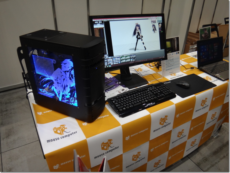 ゲーミング PC 担当:「G-Tune Core i5 が人気の傾向はゲーミングモデルにも来ています。 マザーボードは Z97 の人気が高いですね」 ゲーミング PC 担当:「BTO(カスタマイズ)の人気順は、1位は DVD ドライブ。 2位 SSD の追加、特に Intel の 120 GB が人気です。 3位 HDD の 2TB の追加。 やはりゲーミングモデルでも SSD を搭載する方が増えています。 なお、ゲームと言えばネット接続は有線が基本でしたが、最近は 無線 LAN を使っている方も多いです」 ゲーミング PC 担当:「G-Tune の製品には、メモリにオリジナルのヒートシンク(放熱板)を付けられるようにしています。 ゲームユーザーの方は発熱・冷却に注目するので、常々そうしたニーズに応えたいと思っています。 電源も余裕のある 700 W で、80 PLUS 認証が GOLD の高性能品を用意しています」 ゲーミング PC 担当:「ノートは従来より薄いものを用意しました。 ゲーミングノートは厚くて重いものが多いのですが、GeForce GTX 970M 搭載で 2.5 Kg のモデル またデスクトップ用 CPU を搭載したゲーミングノートも作りました。 通常のノートは GeForce のドライバがパソコンの負荷状況をチェックし、自動で内蔵グラフィック機能とビデオカードを使い分ける省電力機能が働くのですが、これがゲームプレイの支障になる場合があります。 デスクトップ用 CPU を載せることで、その機能をワザと働かなくさせ、常にフルパワーを出せるようにしています」 ゲーミング PC 担当:「『G-Tune ちゃん』というキャラクターを作り、ボイスを声優さんに吹き込んで貰ったのですが、これが大きな注目を受けています。 また、MMD(MikuMikuDance。3D モデルを動かすソフトウェア)で有名な方に監修を頼んだ『MMD 用モデル』を公開し、1年での想定販売台数を2ヵ月で達成する人気になっています。 このパソコンもクリエイター向け PC の1つという位置付けです」 【感想】 ○ リンク : マウスコンピューター |